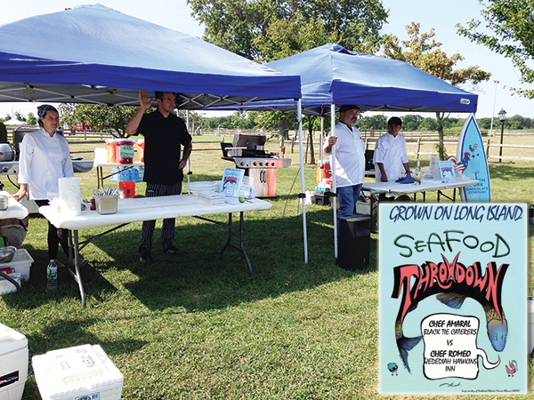 Yaphank, NY, November 14, 2014 - On a warm Friday morning in August, people starting streaming into the Suffolk County Farm in Yaphank to “Celebrate Grown on Long Island Day.” Among them were two of the North Fork’s well-known chefs about to kick off New York Sea Grant’s Third Annual Seafood Throwdown, a fun and exciting competition that features fresh local seafood and produce.