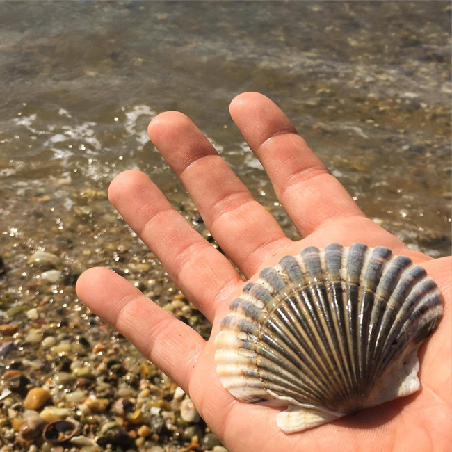 scallop shell washed ashore in Long Island's Noyac Bay. These and other