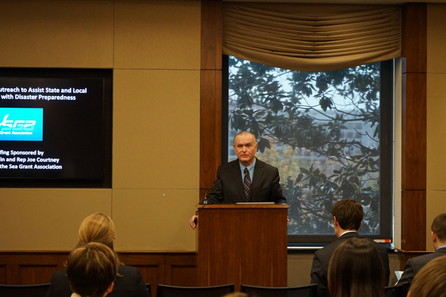 Stony Brook, NY, November 17, 2017 - New York Sea Grant Director Bill Wise participated in a legislative briefing, “Using Science and Outreach to Assist State and Local Decision Makers in Disaster Preparedness and Public Safety,” on November 8 in Washington, DC, which was sponsored by Congressmen Lee Zeldin (NY) and Joe Courtney (CT).
