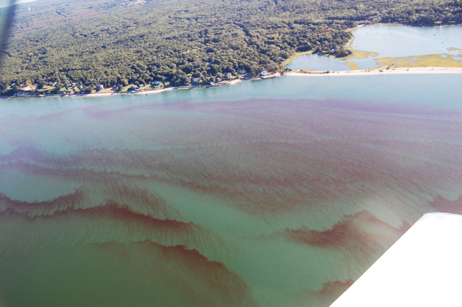 A 2016 toxic ‘rust tide’ in the Peconic Estuary. Credit: courtesy of US Coast Guard Auxiliary.