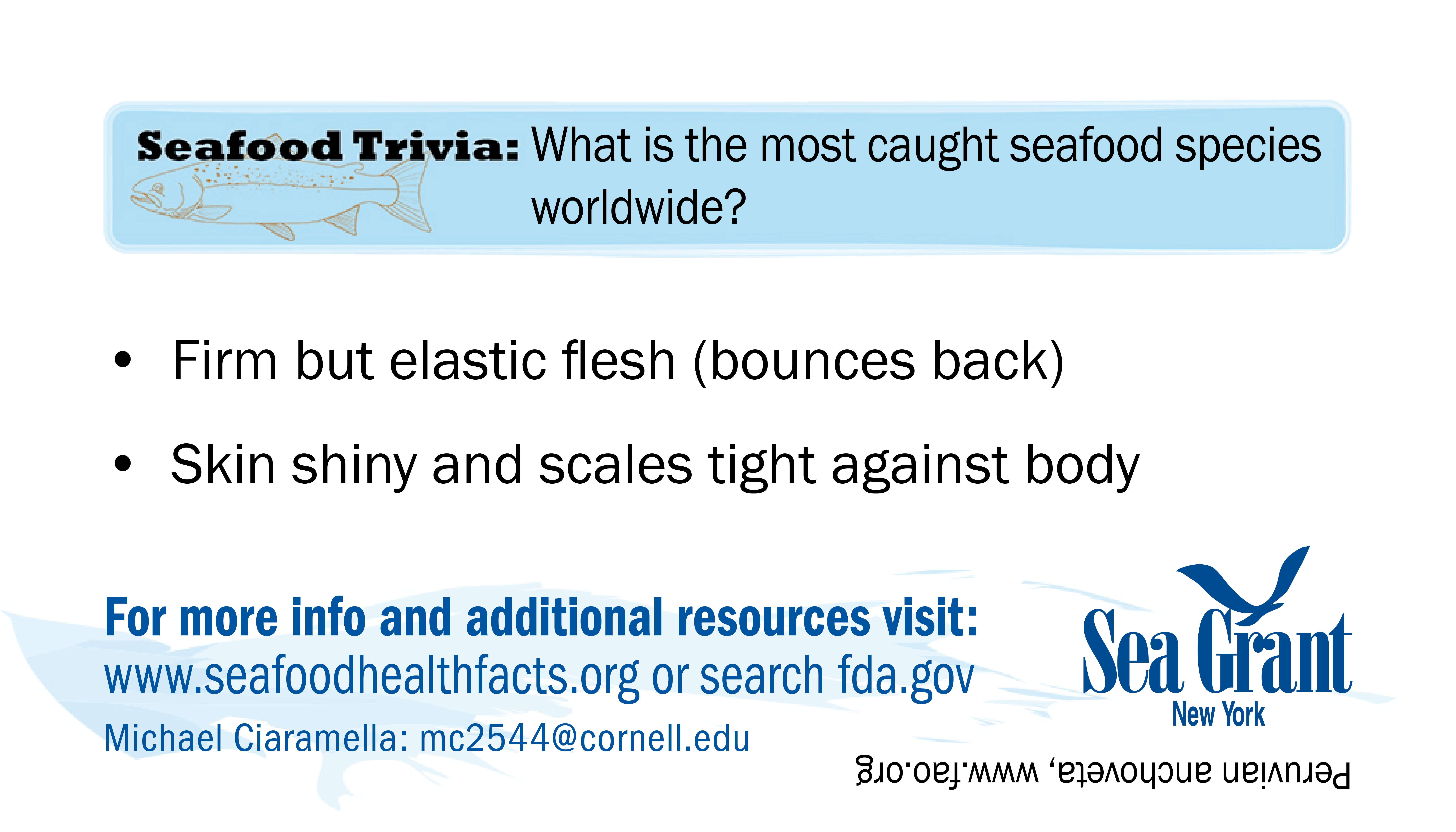 If you have problems downloading any cards or would like them in a different format for use please contact NY Sea Grant's Seafood Specialist: Michael Ciaramella, E: mc2544@cornell.edu, P: (631) 632-8730.