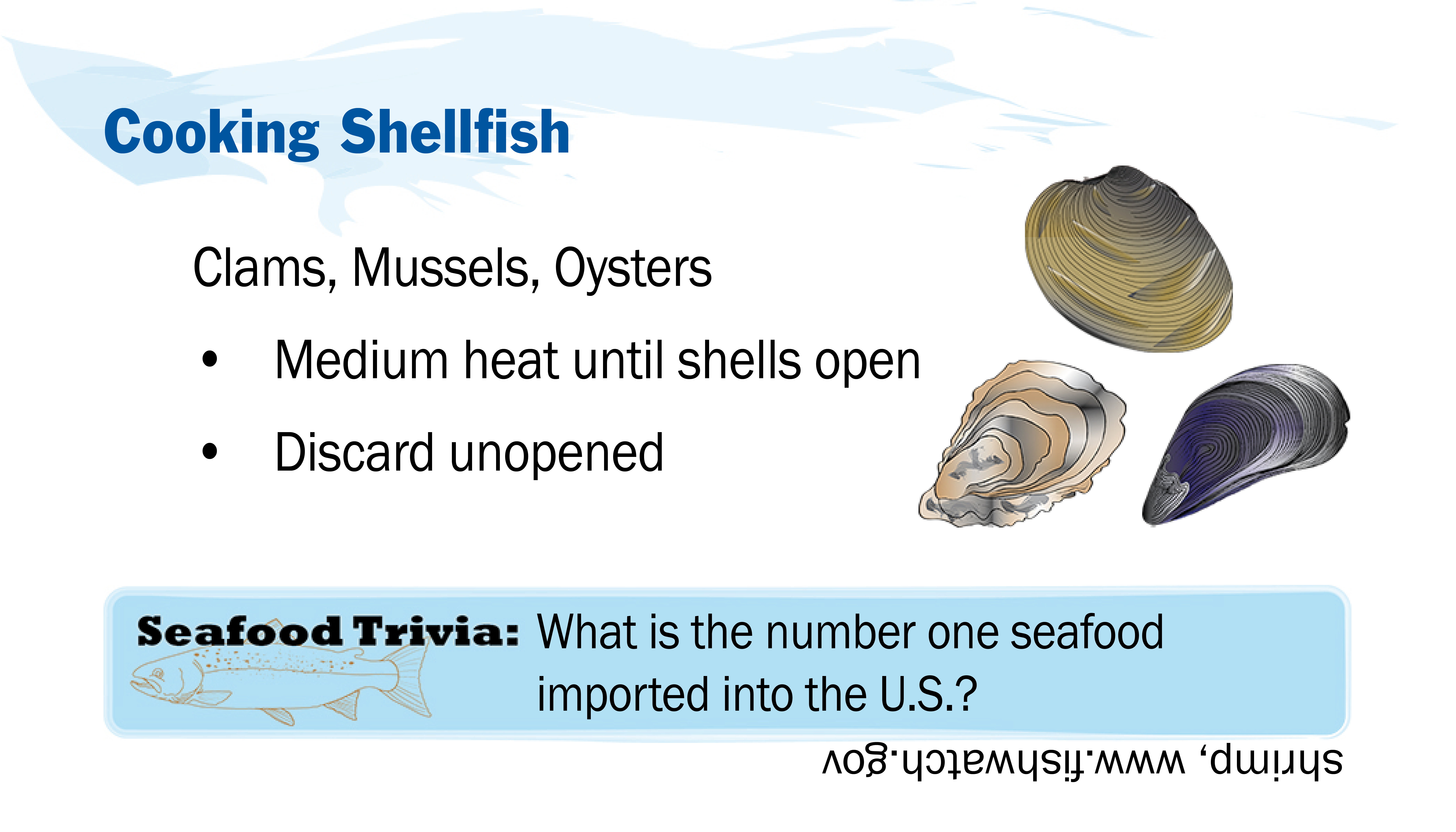 Sections on this page: Set 1: Identifying Fresh Seafood | Set 2: Handling Seafood | Set 3: Preparing Seafood